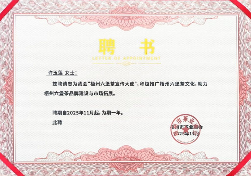 2020~今,马来西亚国际茶文化协会,荣誉理事。